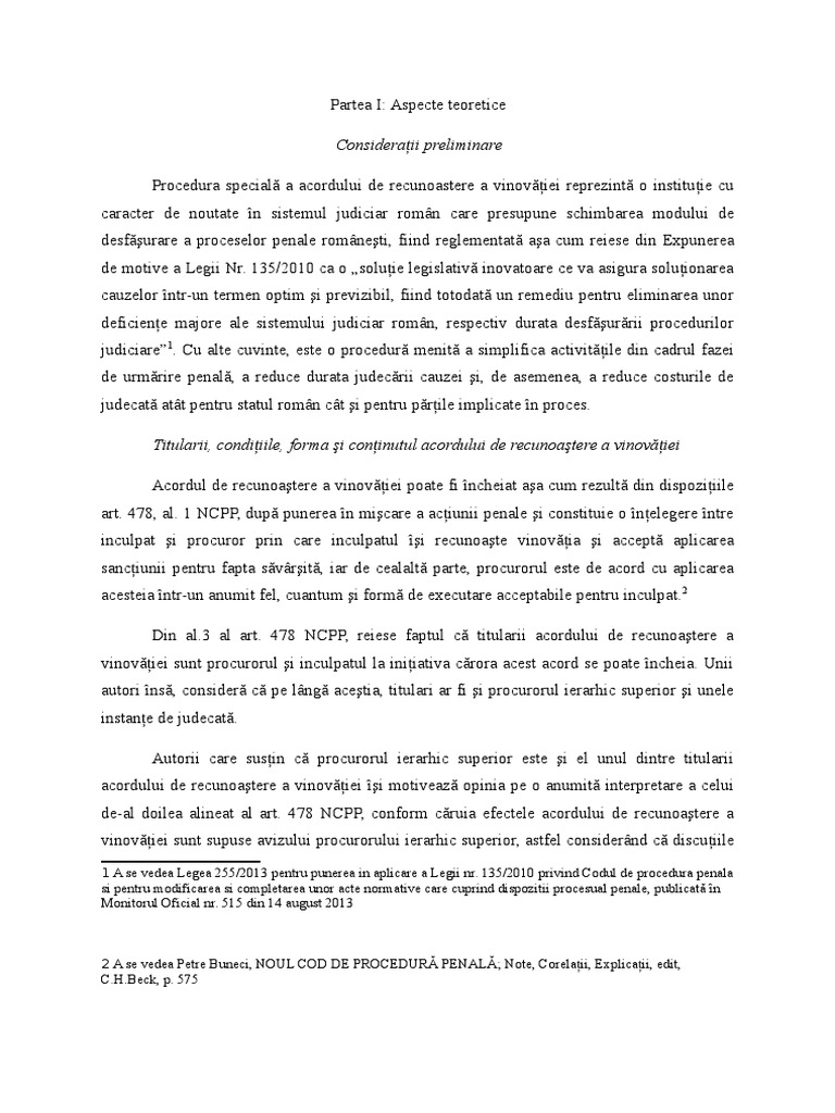 Acordul De Recunoastere A Vinovatiei Ncpp
