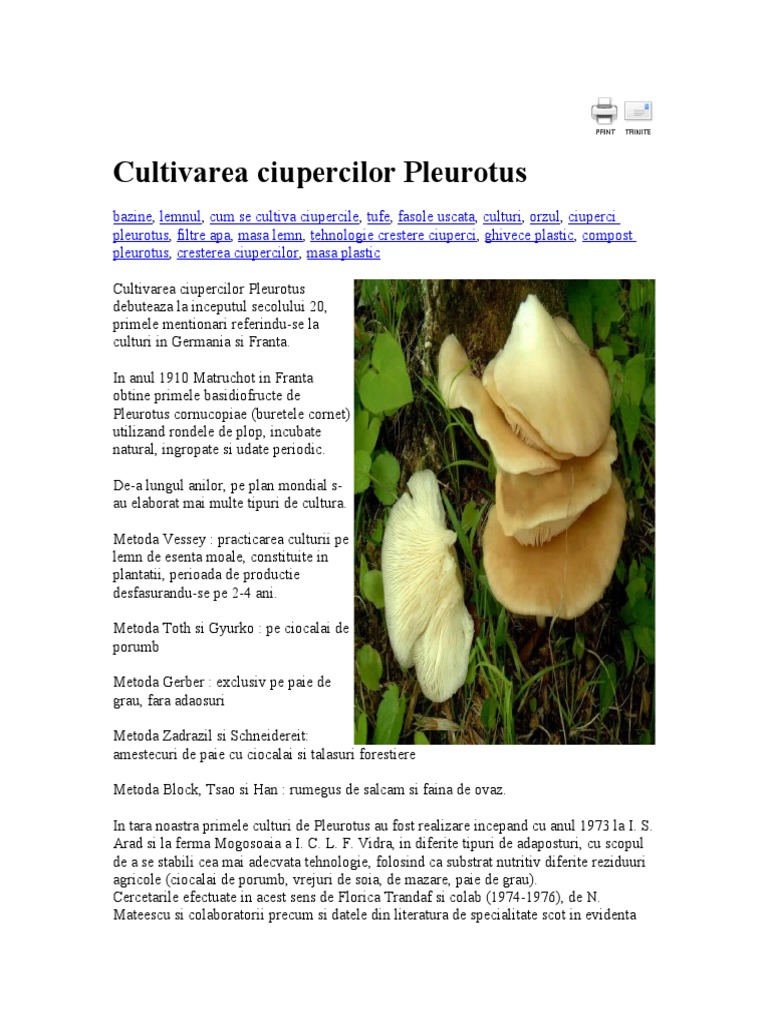 Tehnologia De Cultura A Ciupercilor Pleurotus Mici Producatori