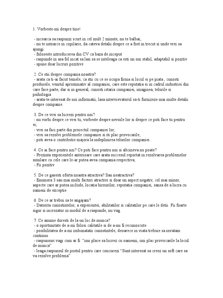 Intrebari Interviu