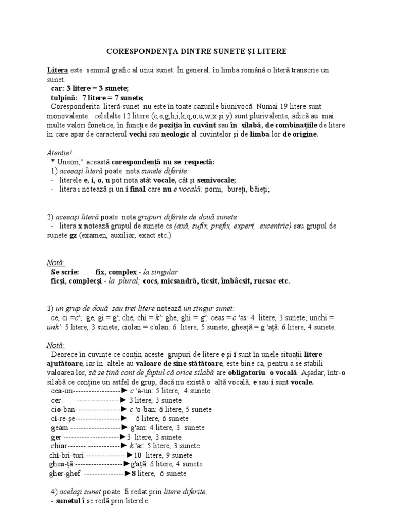 Corespondenţa Dintre Sunete Si Litere
