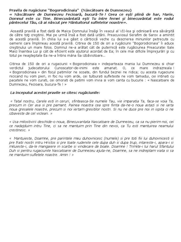 Pravila Maicii Domnului Umilenia Bogorodicinaia Minuni