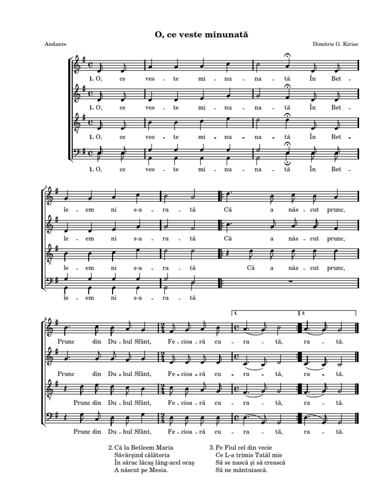 O Ce Veste Minunată Romanian Christmas Carol Satb Sheet Music For Vocals Satb Musescore Com
