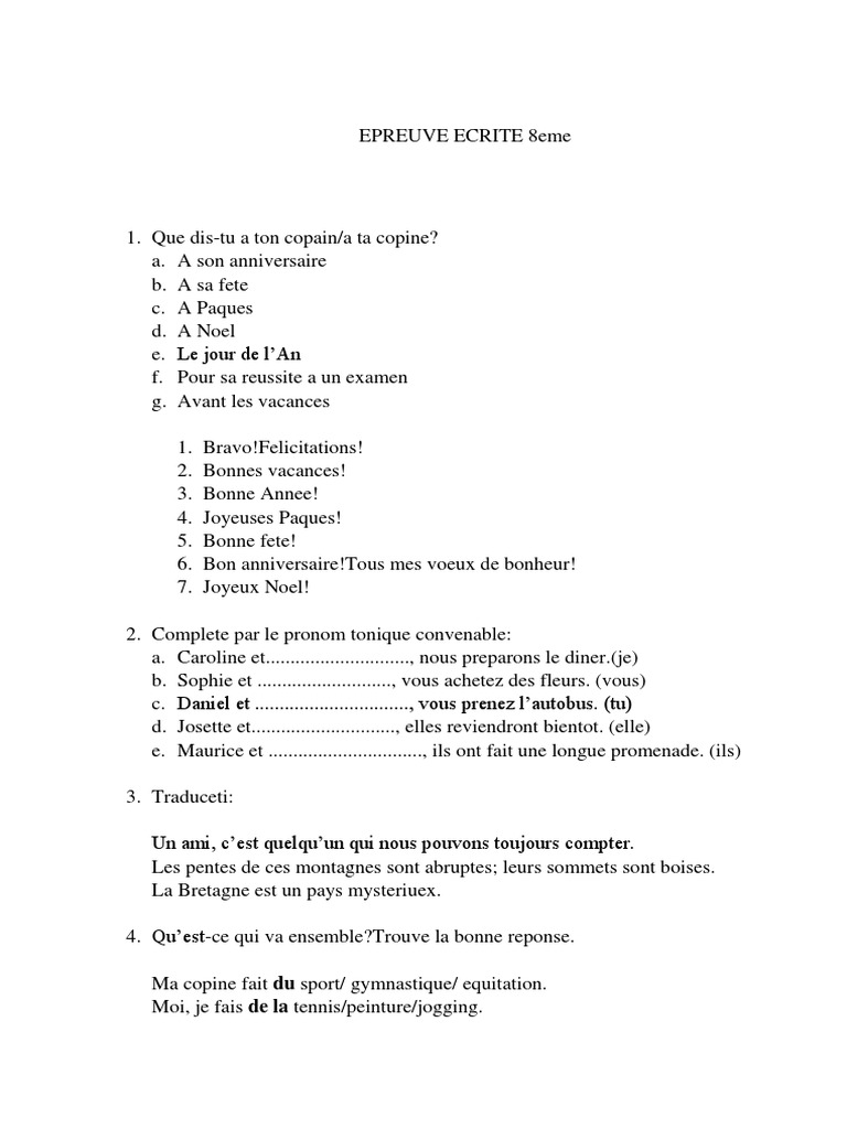 Epreuve Ecrite 8eme