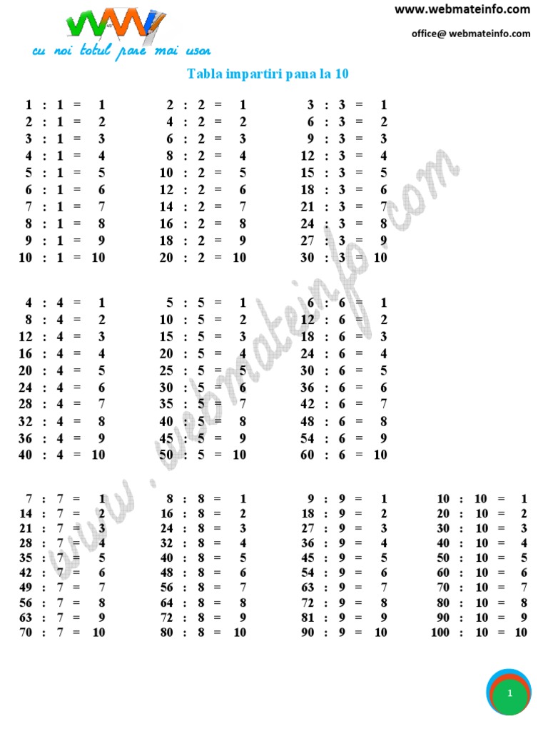 Tabla Inmultirii Tabla Impartirii Vlr0wd07vxlz